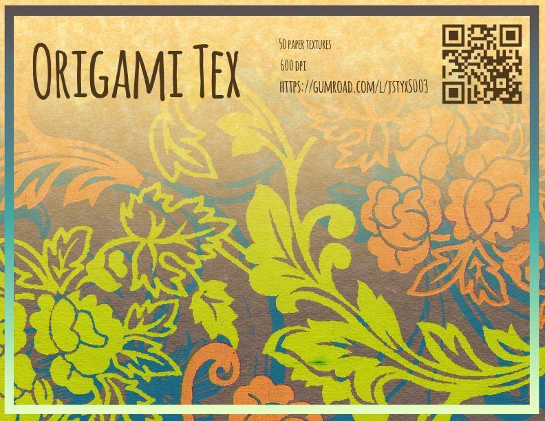 This pack is over 50 high res scans of assorted origami papers and large specialty papers for use in digital art. Because of its grab-bag like nature, there isn't much of a theme, besides random! Some are small sliver of paper with small screen printed patterns, and some are only one fourth of massive patterns! And sprinkled throughout are specialty papers with metallic or water-mimicking effects, to add extra polish to your art and another secret weapon in your artistis battles. Perfect for illustrations, website design, and scrapbook design!